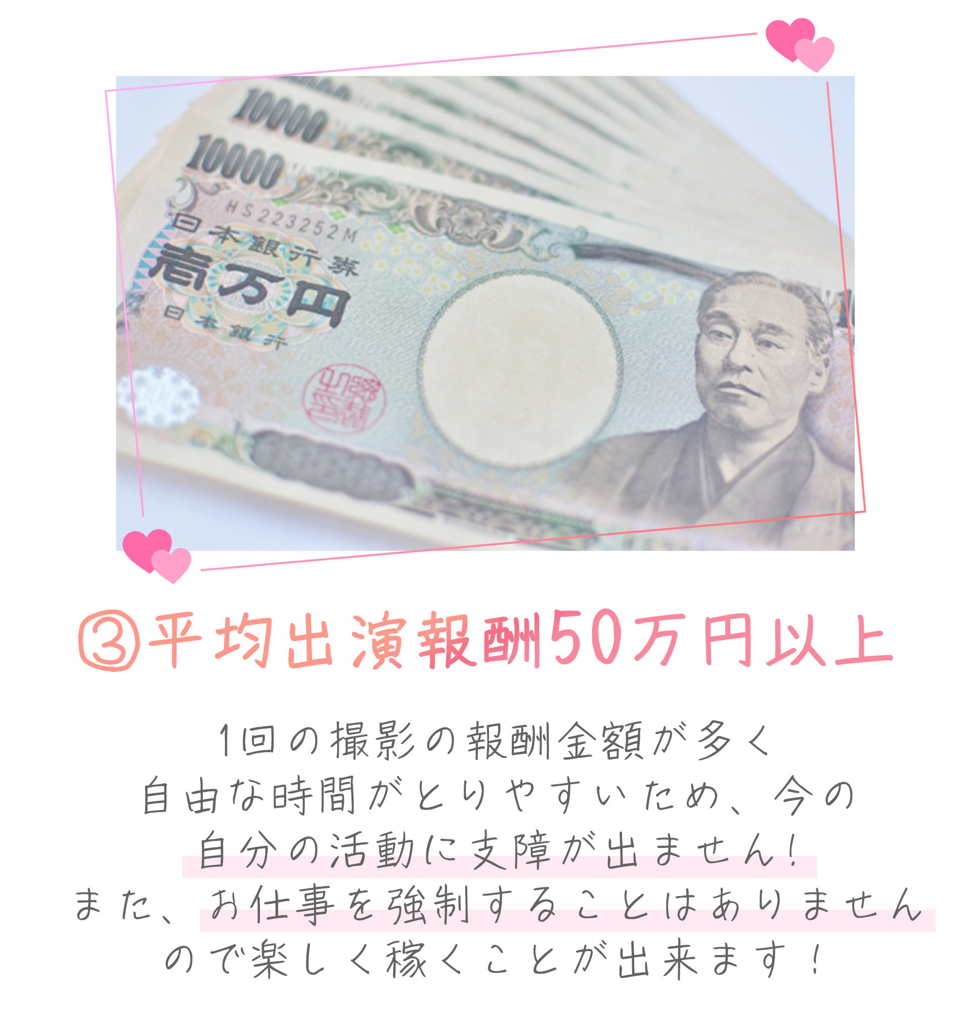 ただし、モデルさんによっては「今すぐ現金でお金が欲しい!」という方もいらっしゃると思いますので、その時はお気軽にご相談ください。